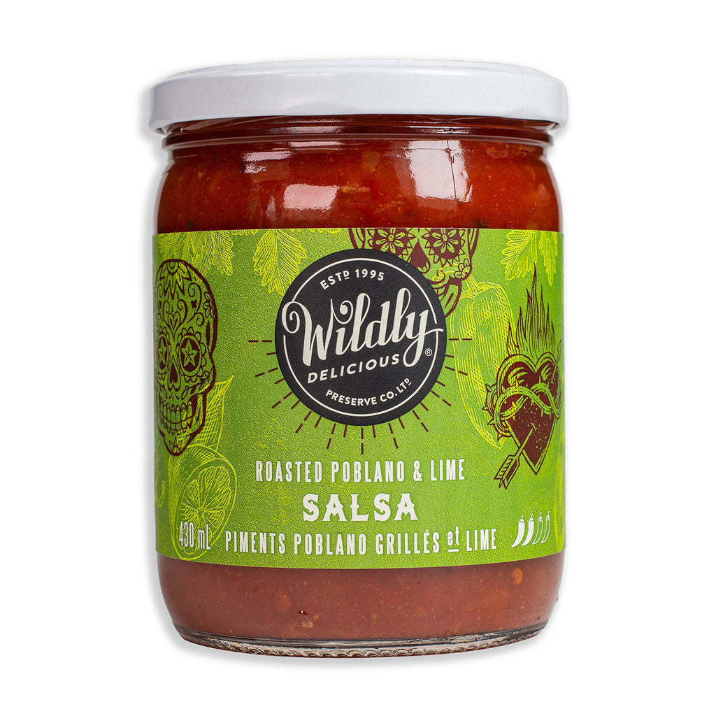 INGREDIENTS: Diced tomatoes (tomatoes, tomato juice, salt, calcium chloride, citric acid) • Water • Tomato paste • Onion • Fire roasted poblano pepper • White vinegar • Sea salt • Garlic • Lime juice concentrate • Smoke flavour • Oregano • Spices.